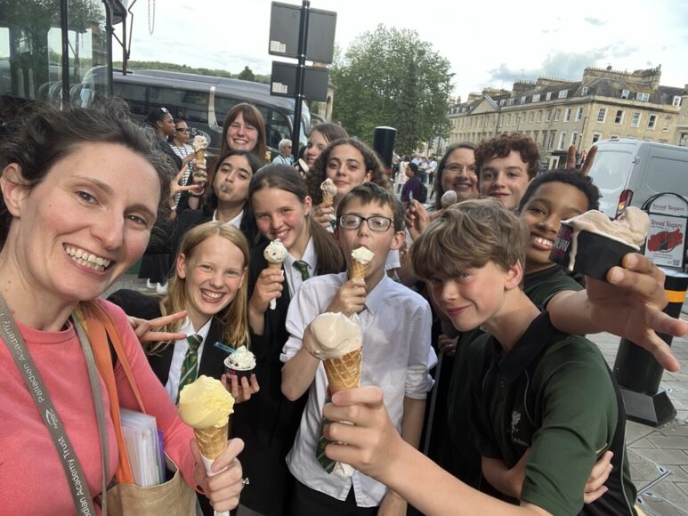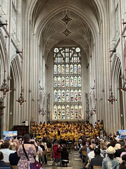 Last weekend, the music department took 10 year 8 pupils to perform with Bath Philharmonia as part of their School Voices Project 2024. All 12 secondary schools in Bath came together to form the creative choir Harmony Rising. The 120 strong choir performed on Friday evening at Bath Abbey as part of Bath Festival's Party in the City singing 4 songs that pupils had written entirely themselves. They were given further opportunity to perform on Saturday evening at The Forum together with Bath Philharmonia and the Royal Marines School of Music.