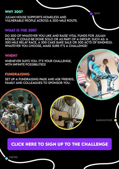 It could be 300 laps of the school field, 300 dance routines, read 300 books, etc...all raising funds for the homeless, vulnerable and at-risk people we support.